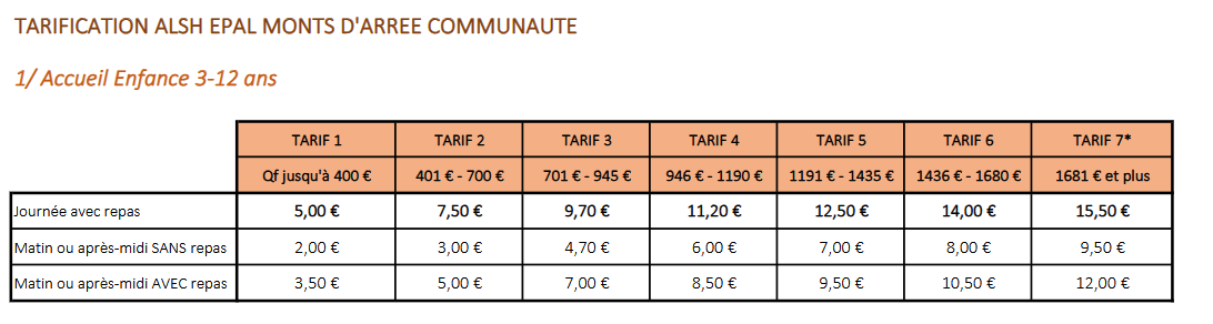 La tarification est la même pour les deux structures et est établie selon le quotient familiale.