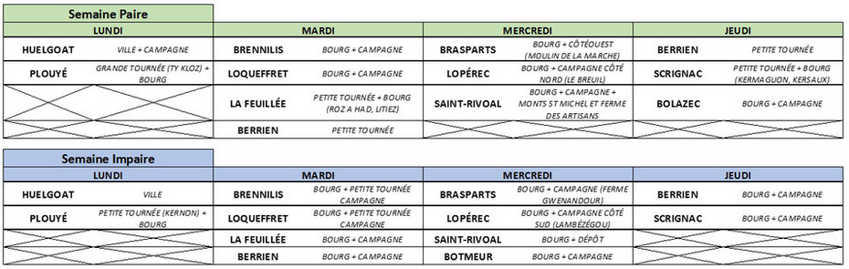 Les tournées de ramassage sont prévues une fois par semaine dans les zones urbanisées et au minimum toutes les deux semaines sur le reste du territoire.